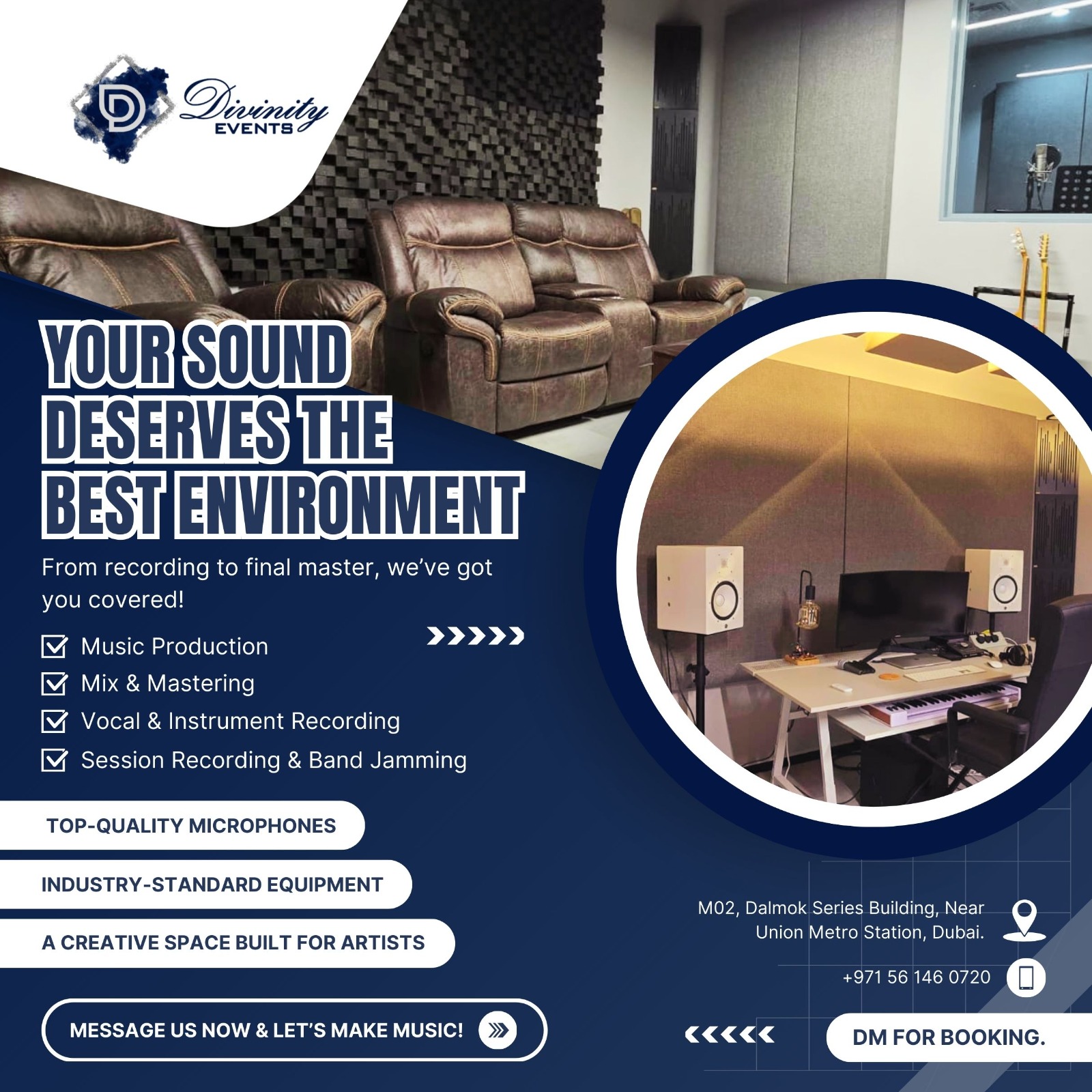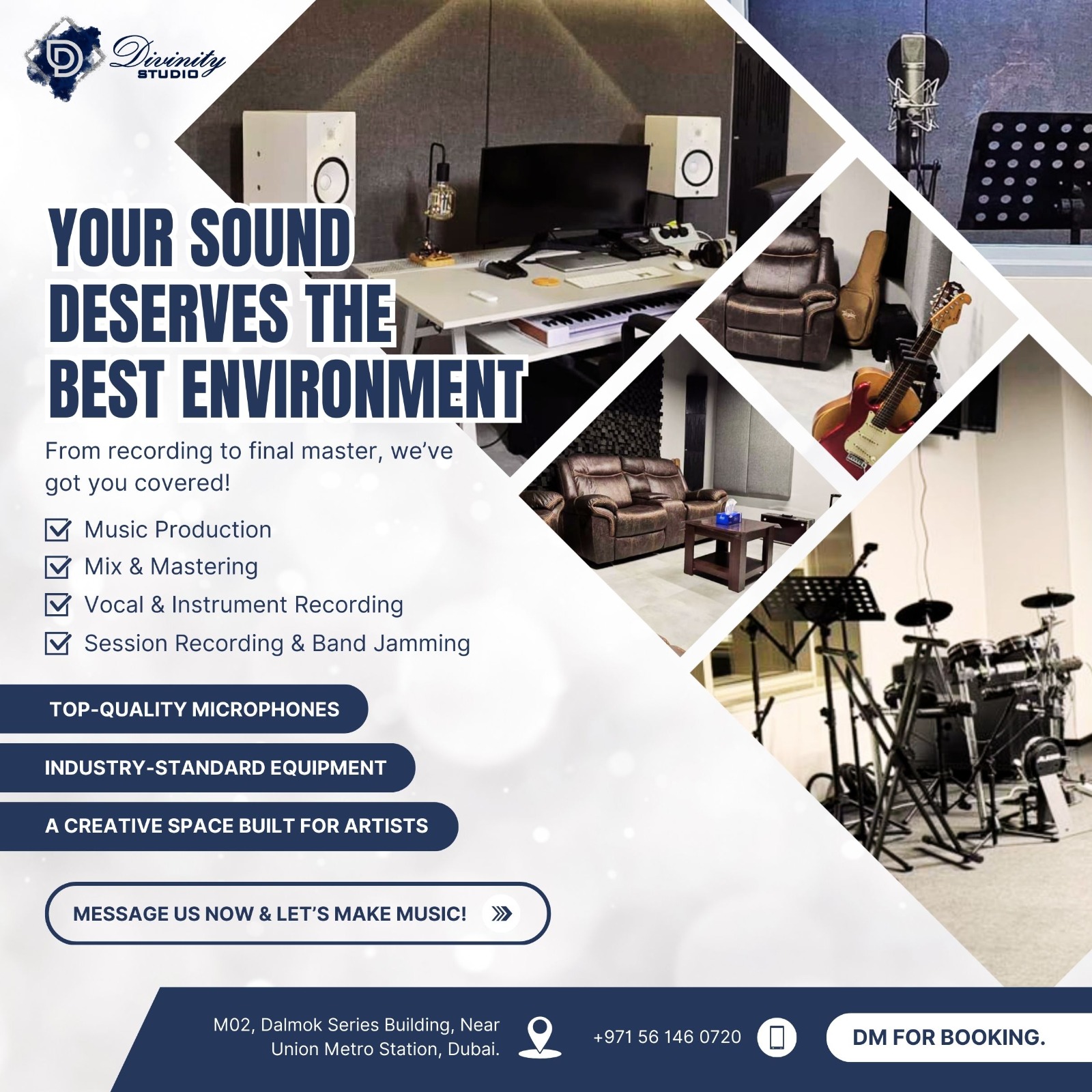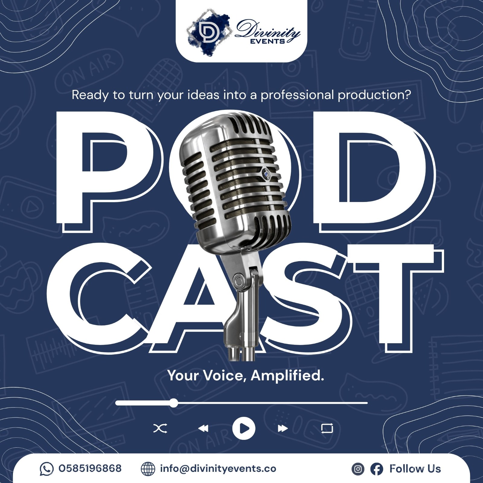 Studio setup, recording, editing, branding, distribution — ideal for podcasts, broadcasts, and live streaming.